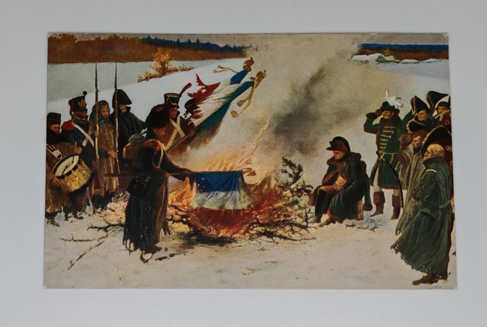 Antique postcard of Napoleon’s burning of flags, c.1905. Very Good condition, unused reverse.