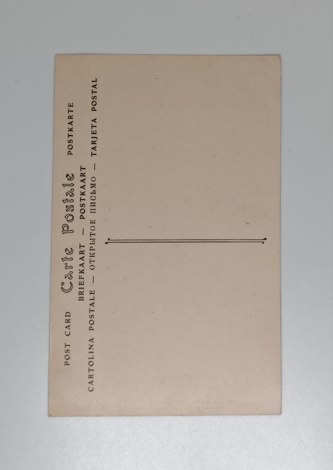 The reverse is blank and unused, featuring the classic multi-language Carte Postale header in French, German, Dutch, English, Spanish, Russian, and Italian — typical of international-distribution cards produced around 1900–1910.