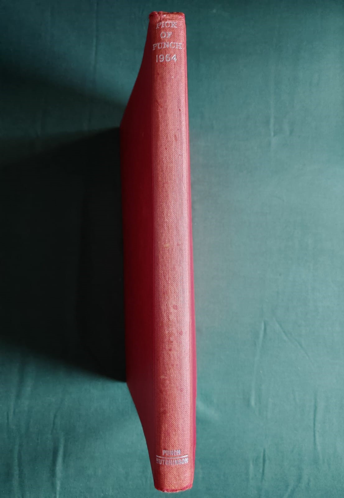 Annual anthology of the best content from Punch magazine for 1964. Edited by Bernard Hollowood. Published by Punch / Hutchinson of London. Contains humorous essays, satire, and cartoons by notable contributors including Alan Coren, Alexander Frater, Basil Boothroyd, Patrick Ryan, E.S. Turner, Gerald Hinch, Angela Milne, ffolkes (cartoonist), David Langdon and others. Red hardback, no dust jacket. Classic British humour publication from the golden era of Punch. Contents include pieces on Cold War satire, social commentary, science parody, and wit typical of early 1960s British intellectual humour.
