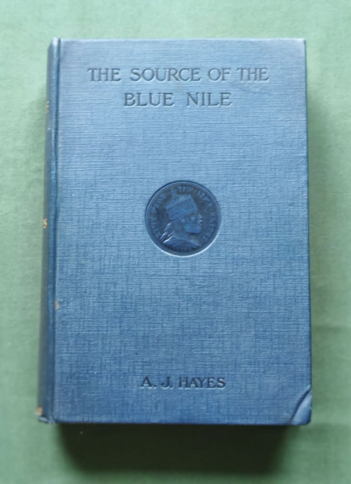 The Source of the Blue Nile – front cover blue cloth blind-stamped medallion A.J. HayesThe Source of the Blue Nile – Arthur J. Hayes, Smith Elder & Co. (1905)